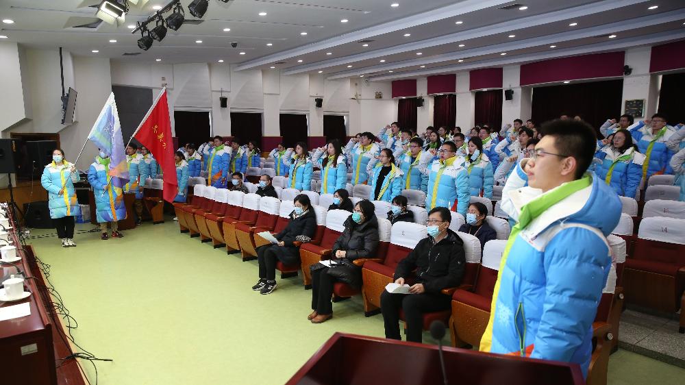 会上,丰台、石景山团区委负责同志为学院志愿服务队授旗,学工部、后勤中心负责同志为志愿者代表发放了学院为志愿者精心准备的暖心礼包,全体志愿者庄严宣誓。