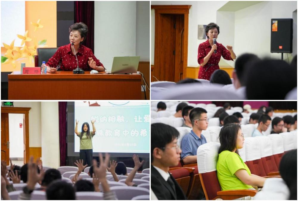 5月27日下午,电科院举办第六十二期格致论坛,邀请党的十七大代表、原北京市东城区特殊教育学校、培智中心学校党总支部书记兼校长周晔,以“悦纳相融,让爱有声——特殊教育中的希望与信念”为主题做专题报告。周晔结合手语教学,分享从事特殊教育的亲身经历、深刻感悟以及特教群体的奋斗历程,呼吁大家对特殊群体给予更多关爱与支持,用心传递大爱和温暖。学院近200名师生现场聆听报告。