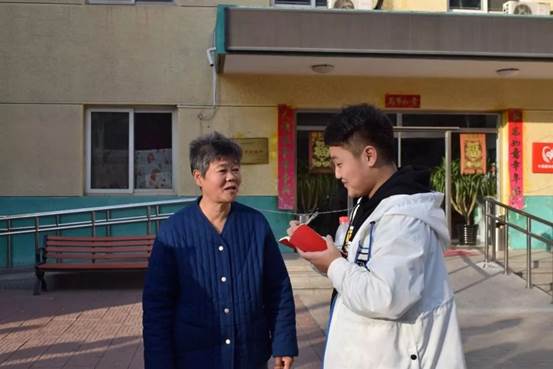 同学们走进老人的房间,给老人送水果,与他们细心交谈,采访老人,走进老人们的生活,为这个冬天带来了温暖和热情。