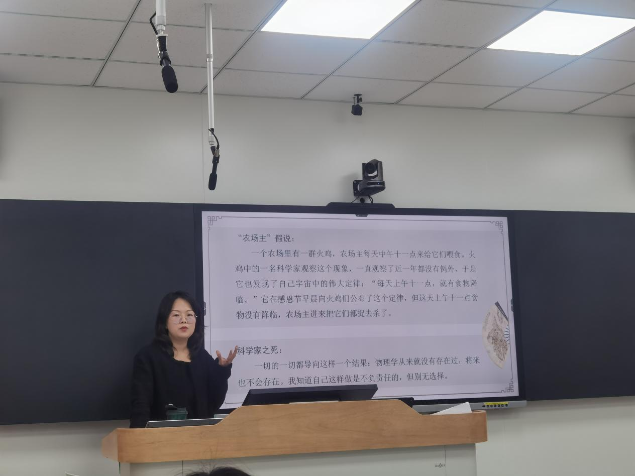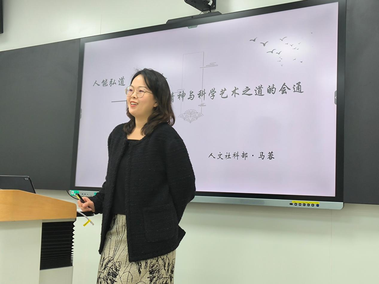 2025410日下午,人文社科部马蓉老师应邀在教学楼608举办“人能弘道 非道弘人——原始儒家精神与科学艺术之道的会通”美育专题讲座,学院20余名师生参加。活动由研究生部、人文社科部主办,“科学与艺术”课程组承办。