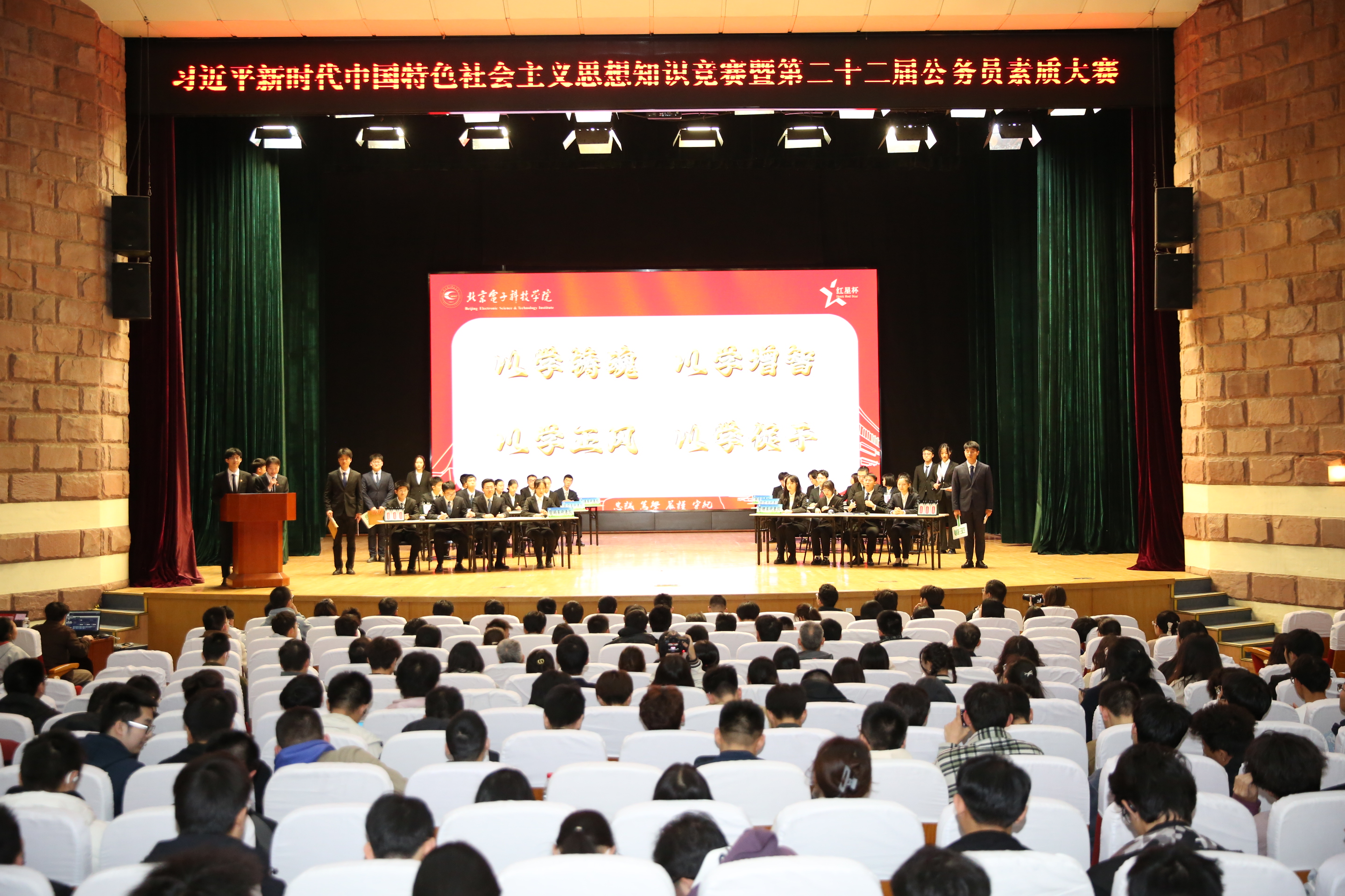 3月29日下午,电科院在文化艺术中心举办“红星杯”习近平新时代中国特色社会主义思想知识竞赛暨第二十二届公务员素质大赛,全院选拔的6支队伍共24名参赛选手同台竞技,院领导和2000余名师全程观赛。
