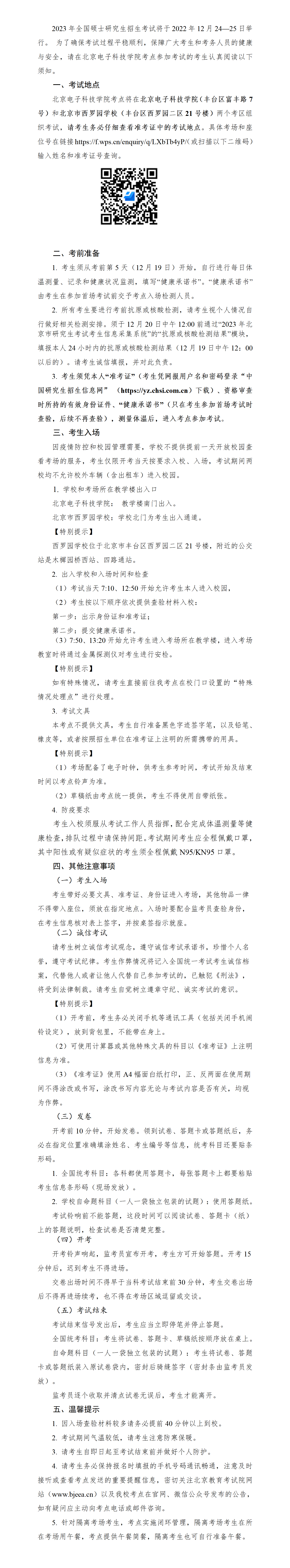 2023年全国硕士研究生招生考试BETWA西汉姆联官方官网考点(1118)考生须知
