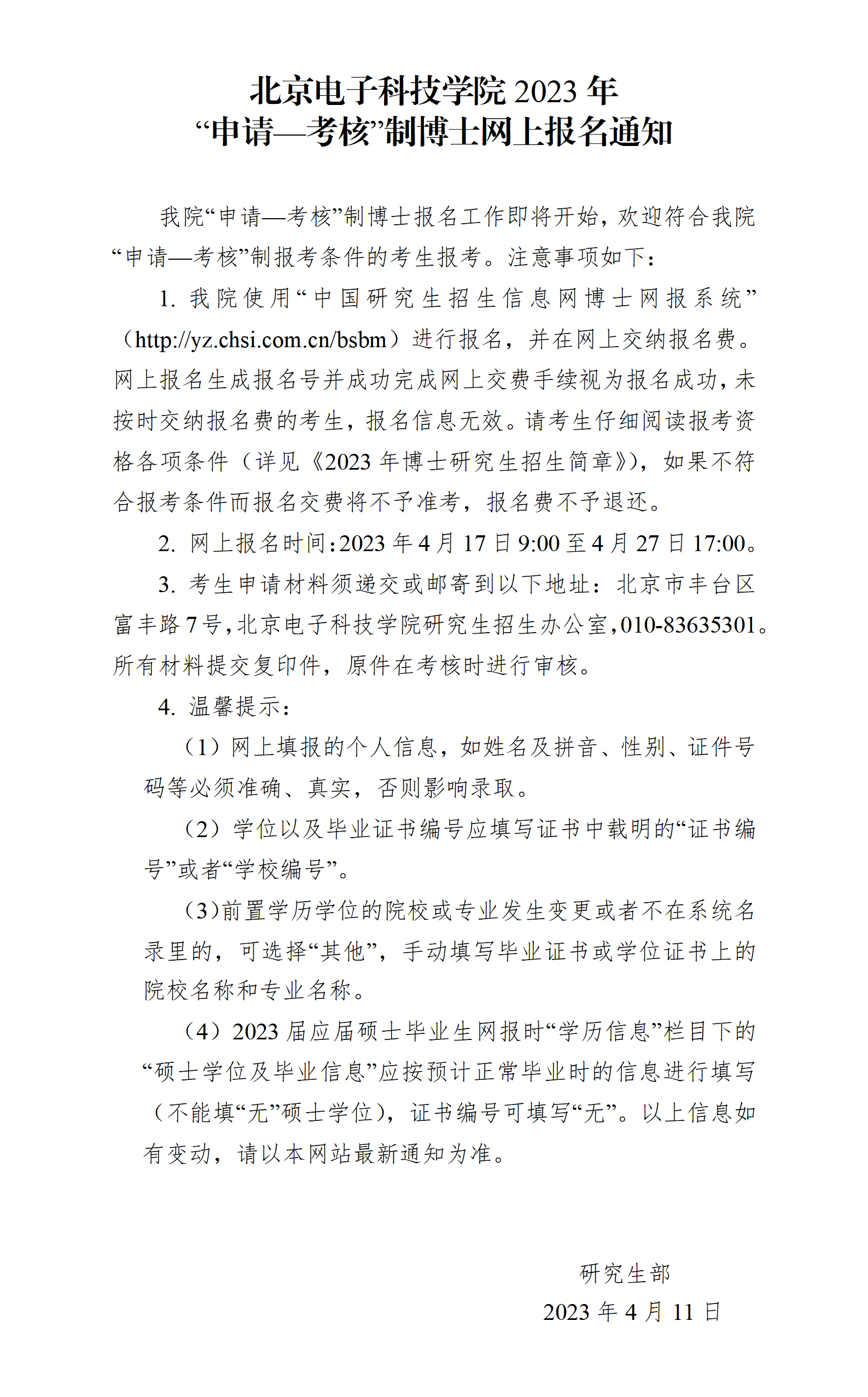 BETWA西汉姆联官方官网2023年“申请—考核”制博士网上报名通知