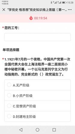 答题活动分两部分进行。学院使用“问卷星”app设计制作党史知识答题页面,每周发布1期,每期10道题,教职工通过手机登录后完成线上答题。学生通过“中国大学生在线”微信公众号的“党史答题”栏目参加答题活动。