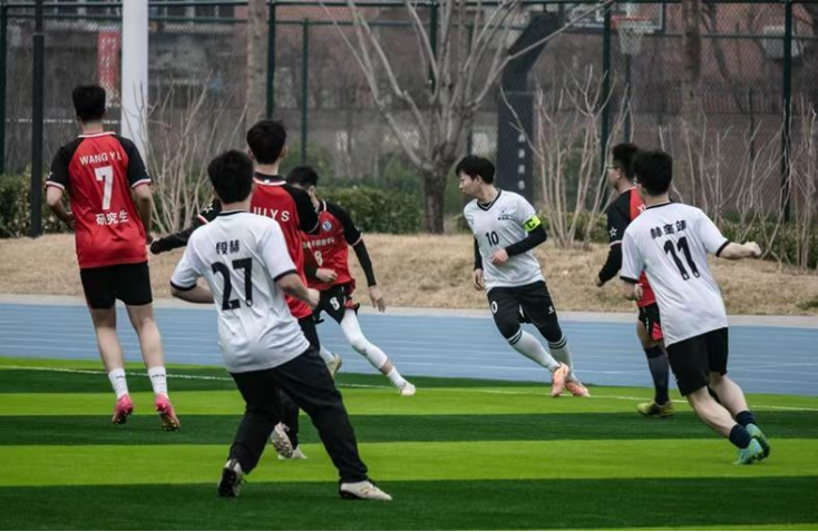 为了以更饱满的姿态冲击比赛,我系队员在赛前三周便投入到紧张高强度的训练之中。主力队员每天对射门、传球、配合等技术进行专项训练至少两次,陪练队员同样在背后默默付出与支持。刻苦的训练最终化为赛场上的精彩发挥,每一位运动员都踢出了管理系学子敢打敢拼,昂扬向上的精神风貌。