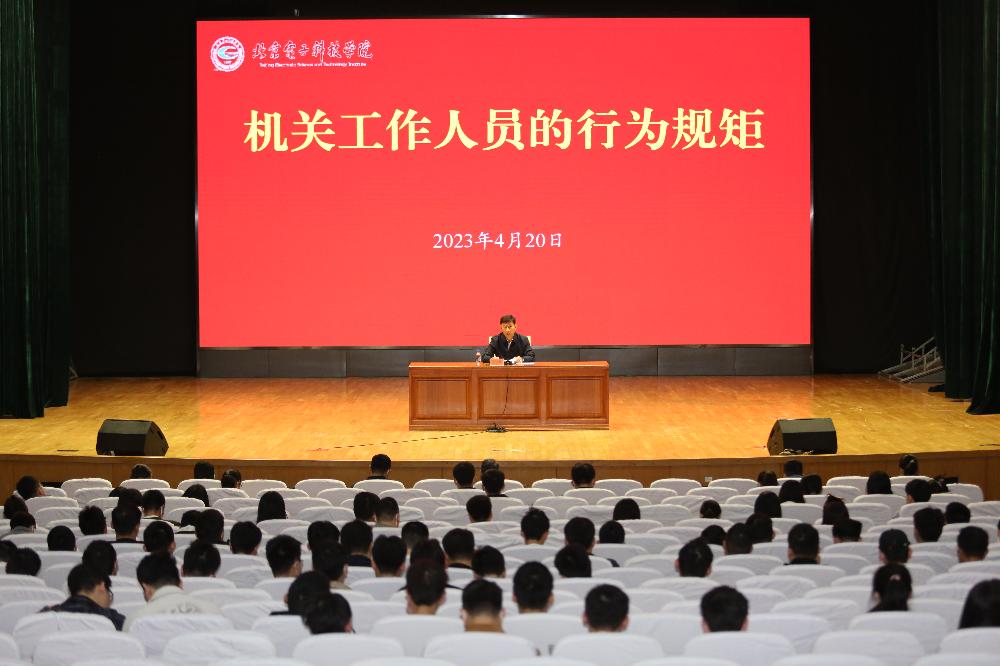 根据学院党风廉政教育月活动安排,4月20日下午,学院纪委书记宋扬同志以“机关工作人员的行为规矩”为题,为年轻教职工和毕业生作专题辅导报告。学院各部门35岁以下年轻教职工、各系毕业班学生,共约520人参加。报告归纳提炼了机关工作人员日常工作生活中应遵守的27条行为规矩,帮助大家深刻理解机关文化和礼仪规范,更好地完成从学生向机关工作人员的角色转变。