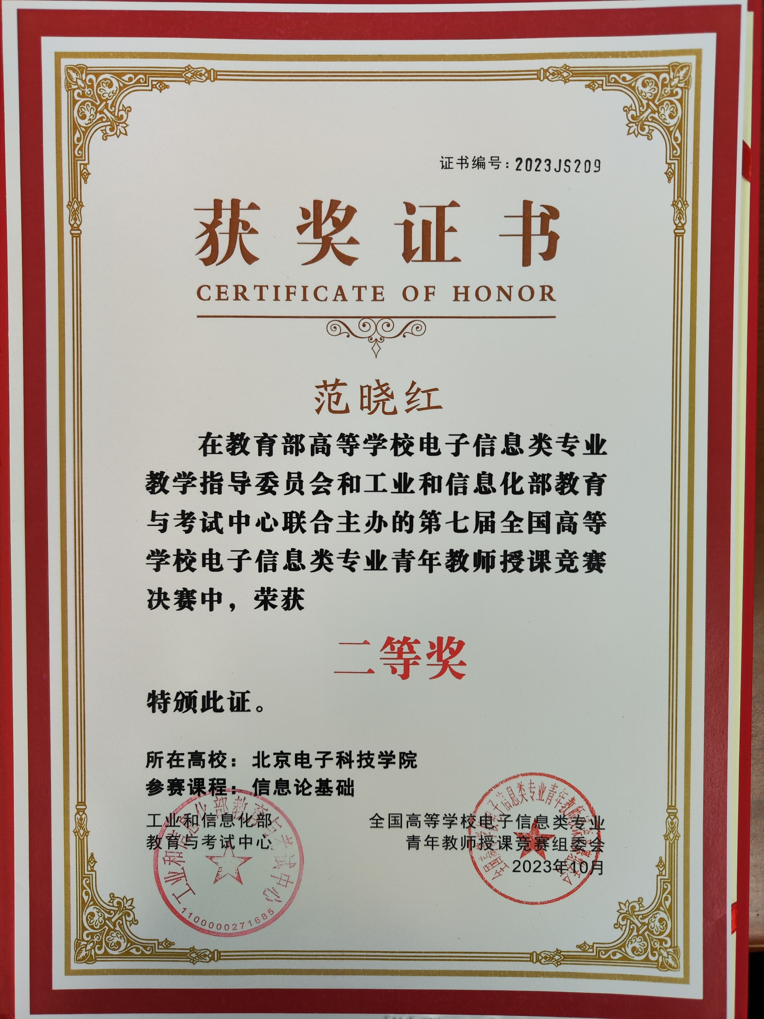 近日,第七届全国高等学校电子信息类专业青年教师授课竞赛决赛在桂林电子科技大学落下帷幕,来自63所院校的106名选手进入决赛,经过激烈角逐,学院电子与通信工程系教师范晓红荣获本次赛事全国二等奖。