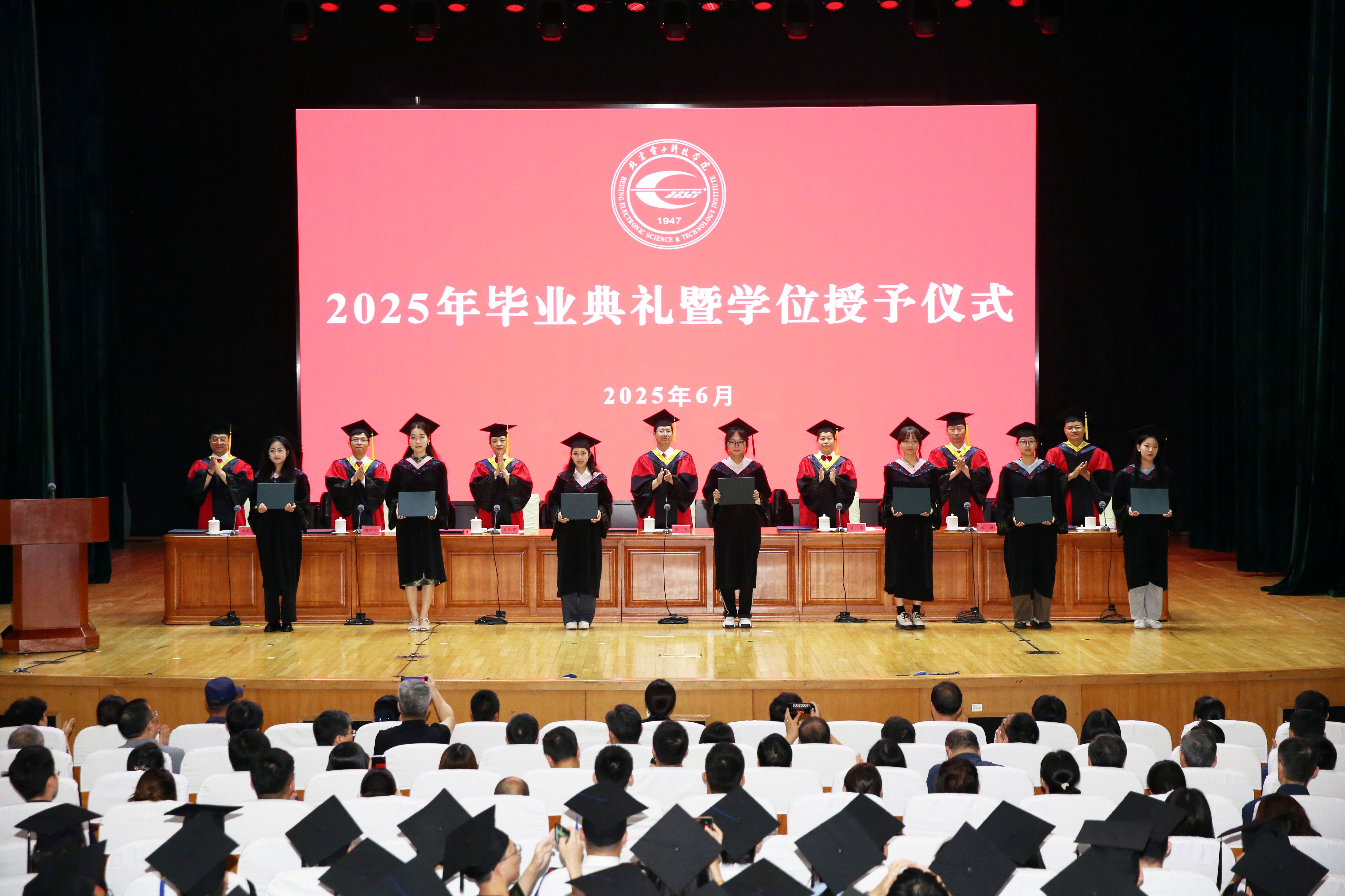 典礼上,院领导宣读了《学院关于表彰2025届优秀毕业生的决定》和优秀毕业生名单为优秀毕业生颁发荣誉证书,为毕业生代表颁发学位证书并拨穗。毕业生代表向教师和服务保障人员代表献花,本科毕业生、研究生毕业生、教师代表先后发言。党委副书记、院长肖嵩代表学院向2025届全体毕业生圆满完成学业表示热烈祝贺,提出殷切期望:一要忠诚,忠于祖国,忠于人民;二要励志,立鸿鹄志,做奋斗者;三要求真,求真学问,练真本领;四要力行,知行合一,做实干家。